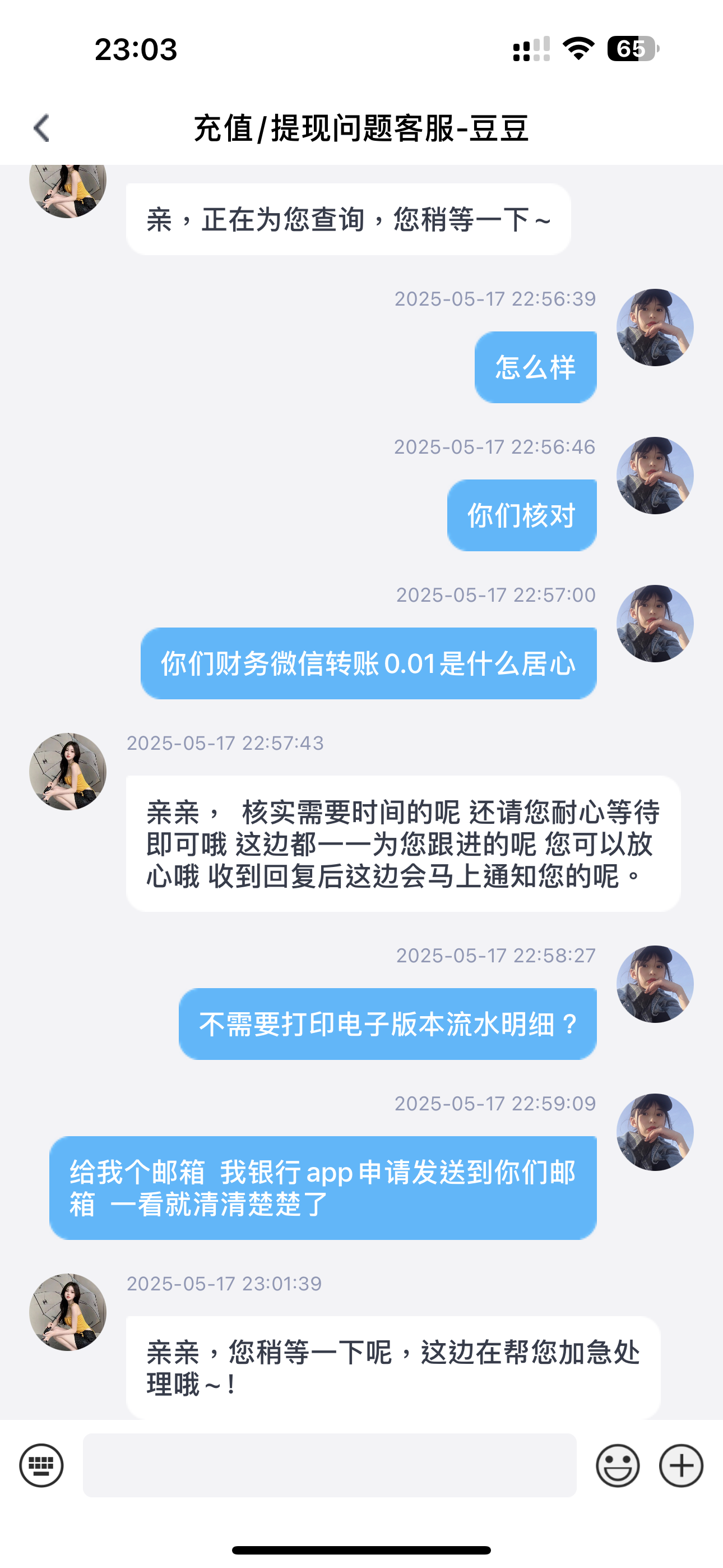 跟他们要出款回执死都不给发,视频录制了4遍一直说模糊看不清,最后又让一直等,这笔0.01就想冒充1000