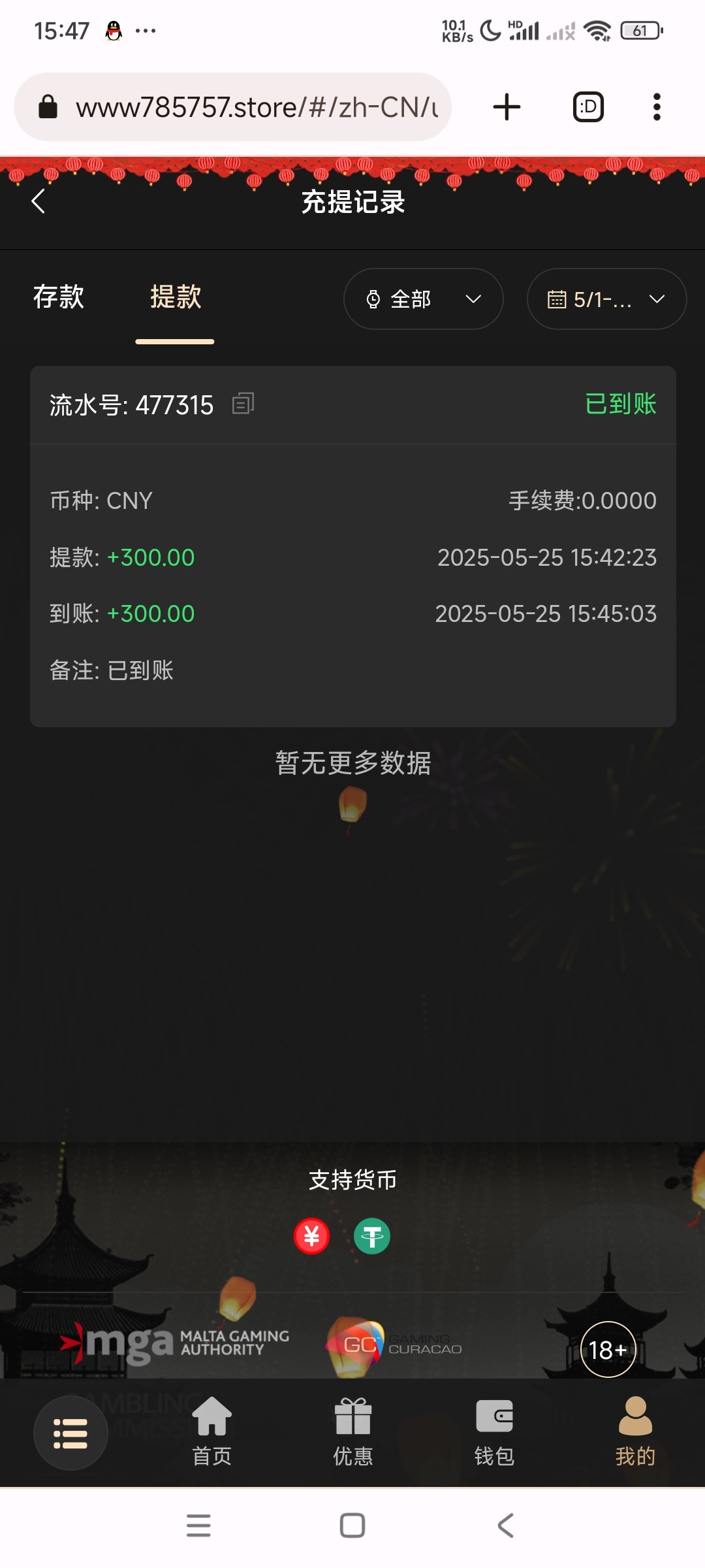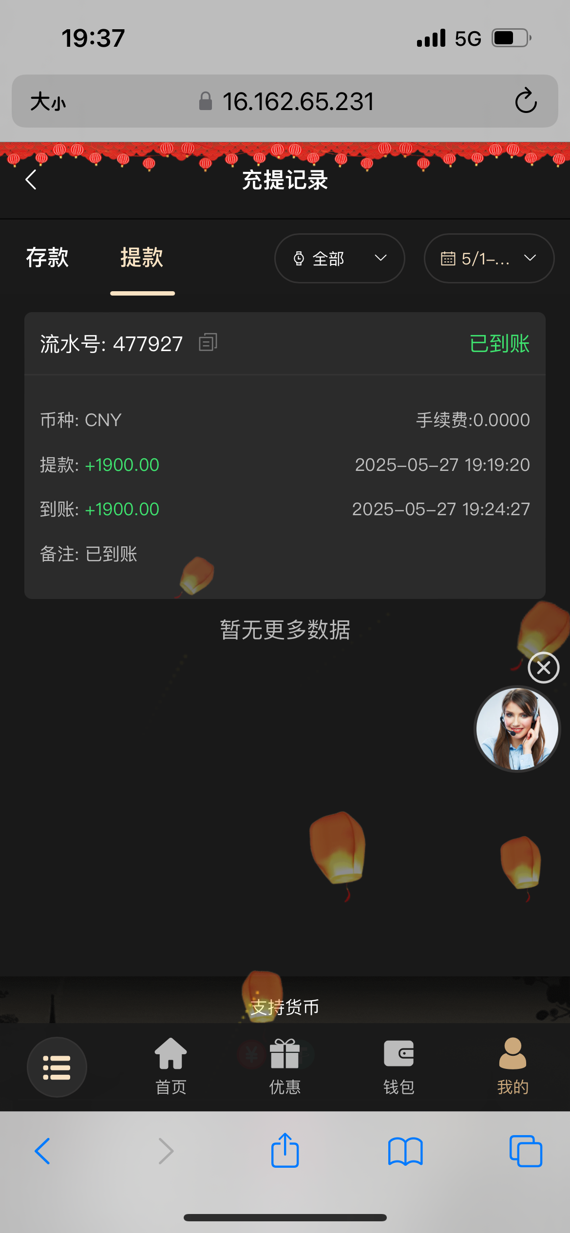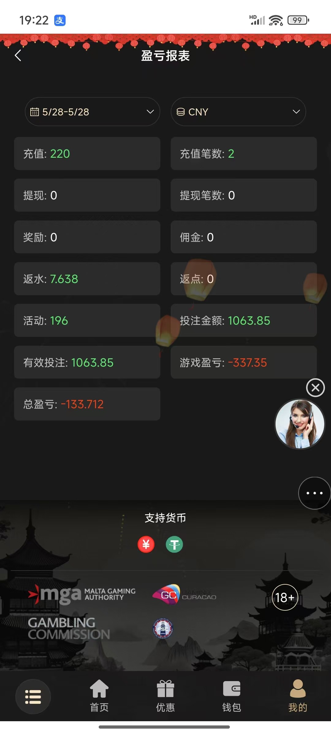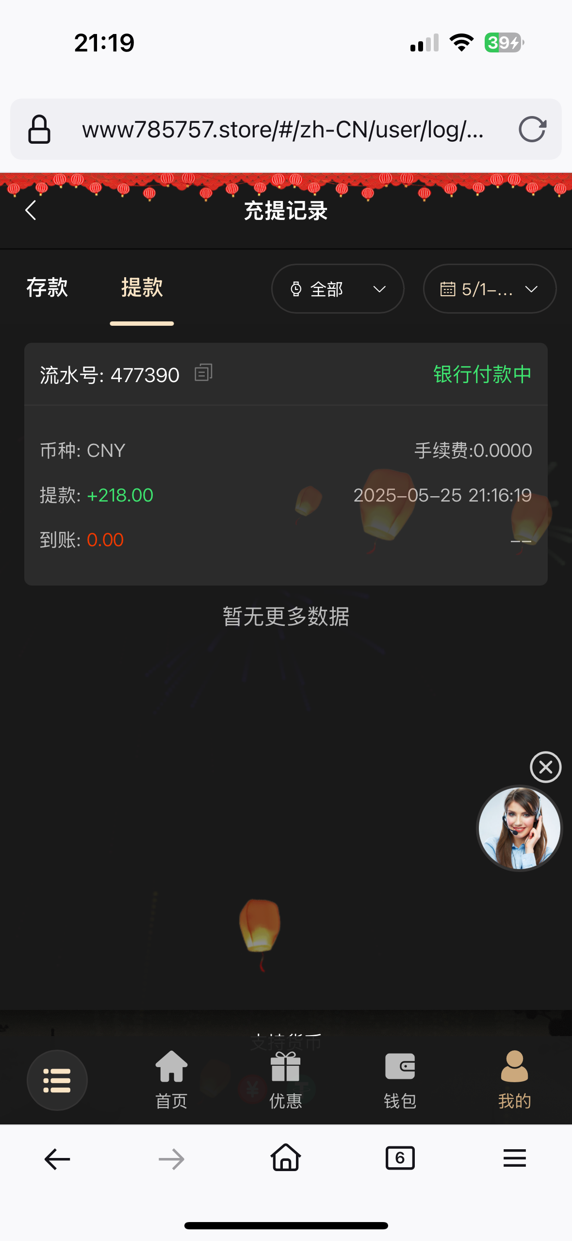 200+188 出500 直接买2块的福运买到1k刷完水剩500 提现有点慢