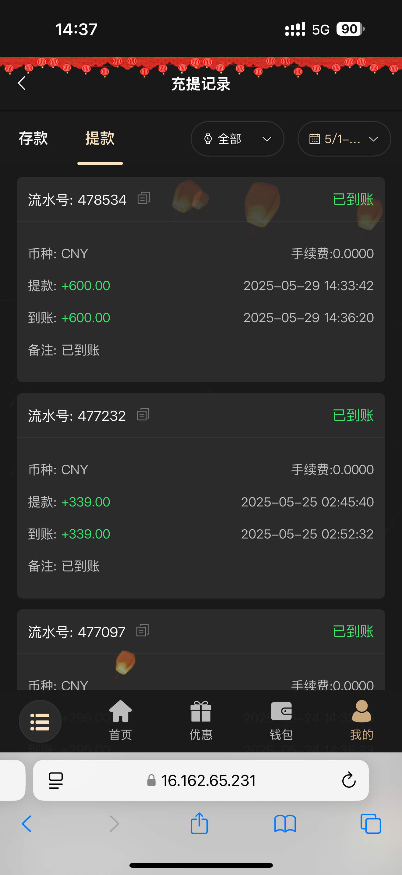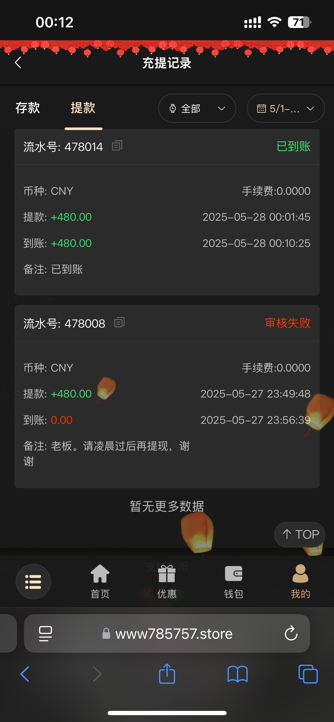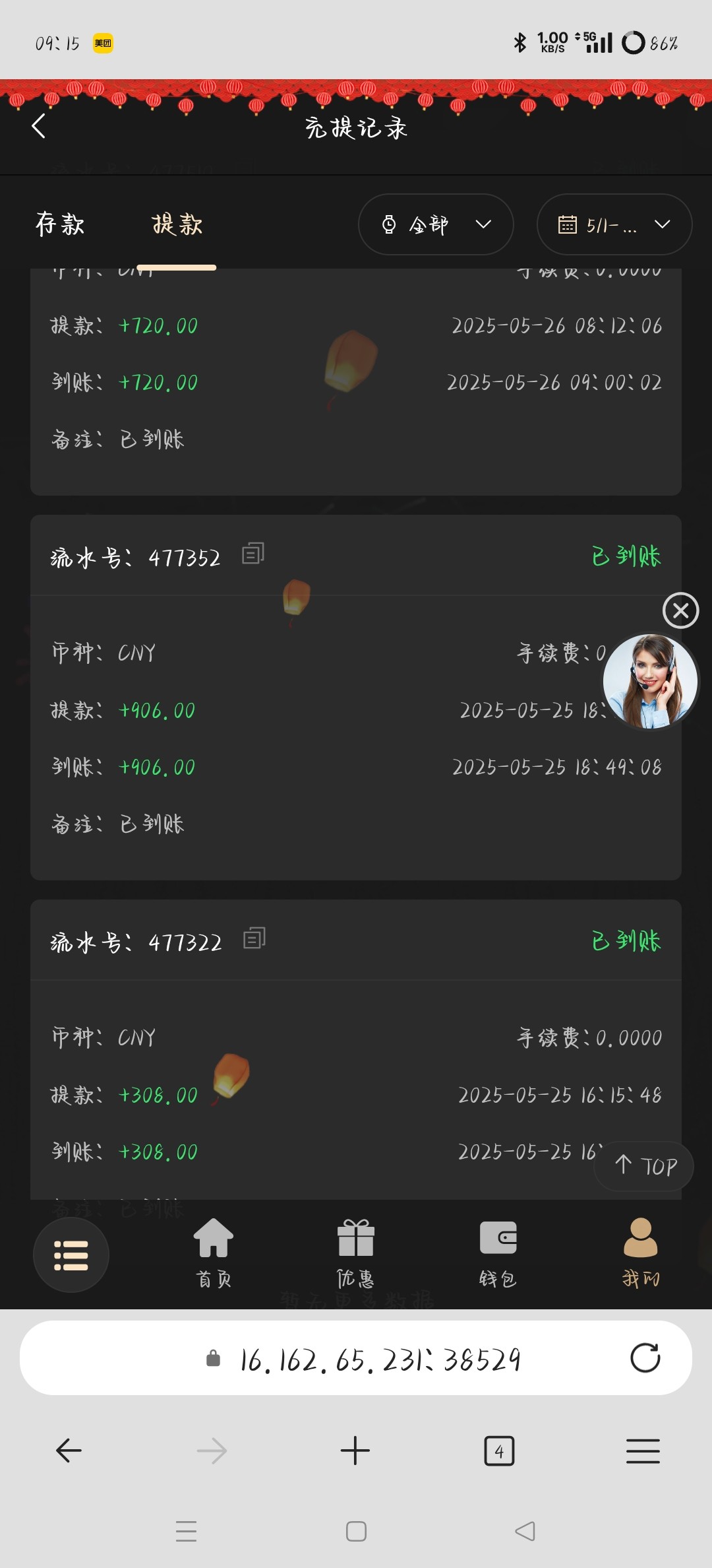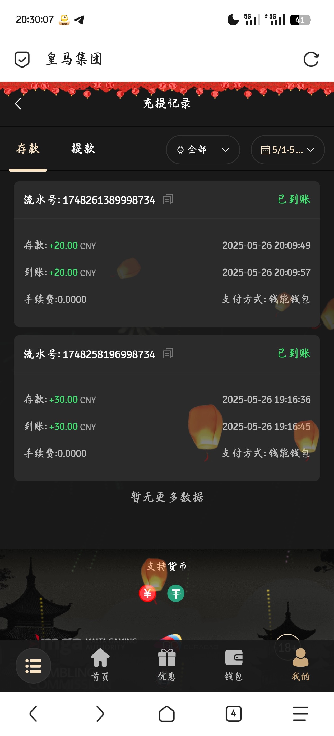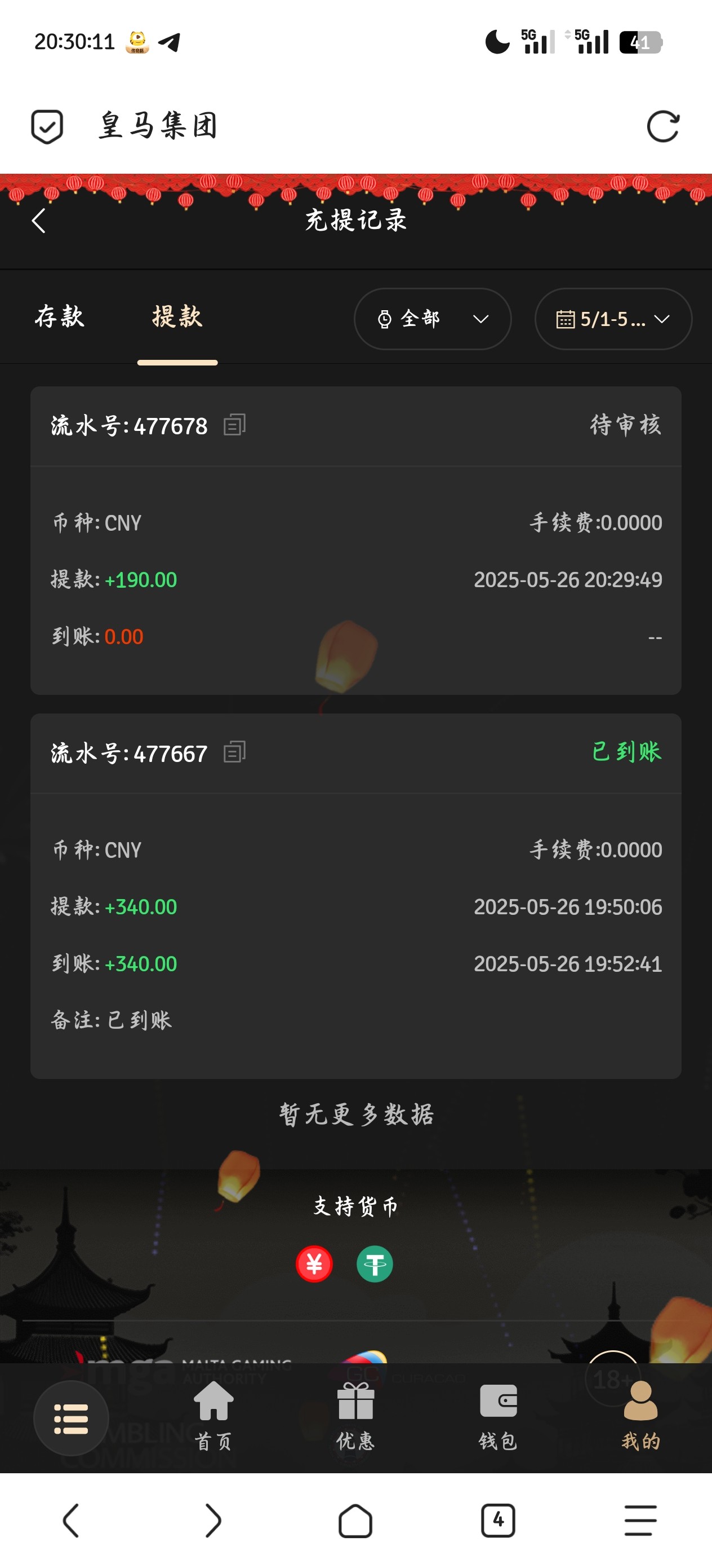 200+188 出500 直接买2块的福运买到1k刷完水剩500 提现有点慢