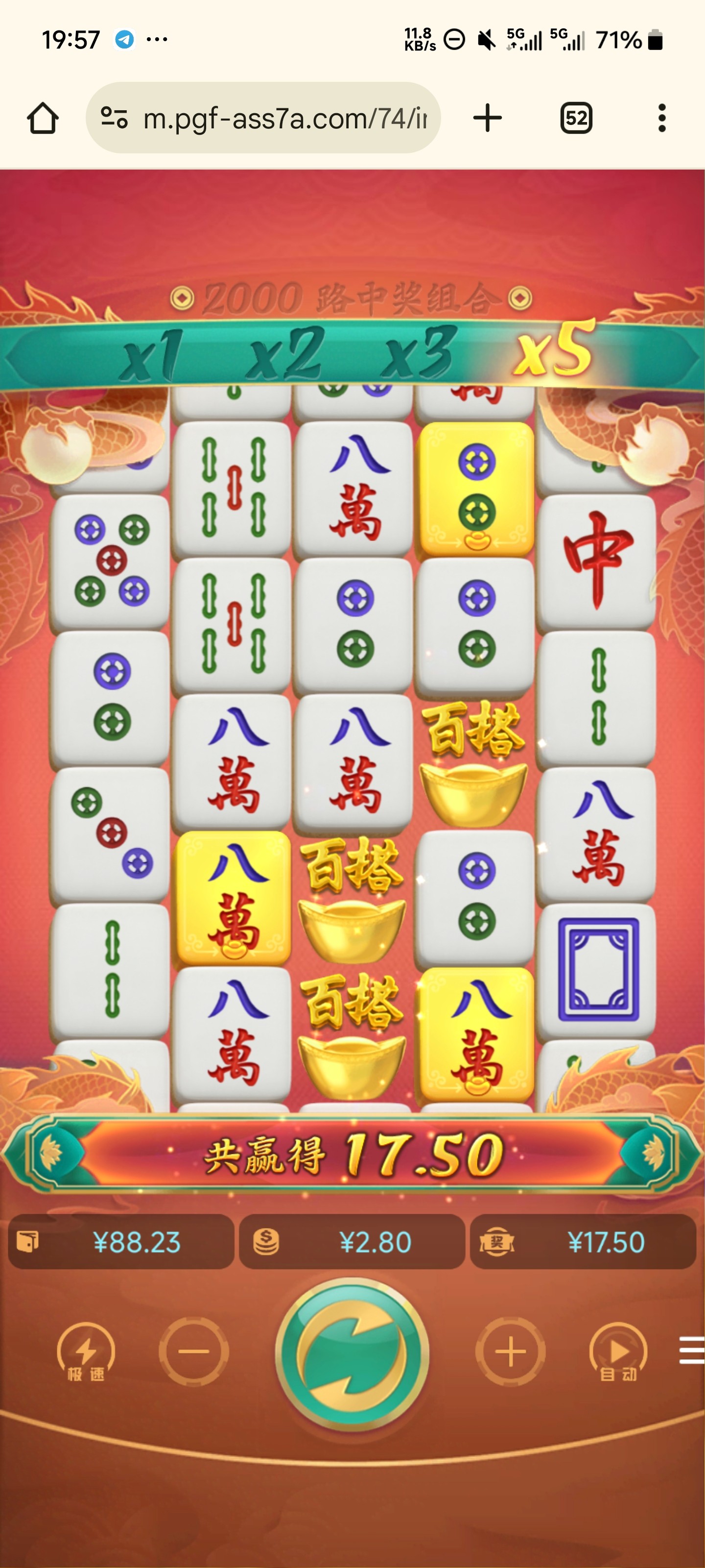 玩的麻将一和二,别说了,今天刚刚打的一次100➕88挂壁了,别玩了兄弟我就赚了三四百,在不玩了没啥水