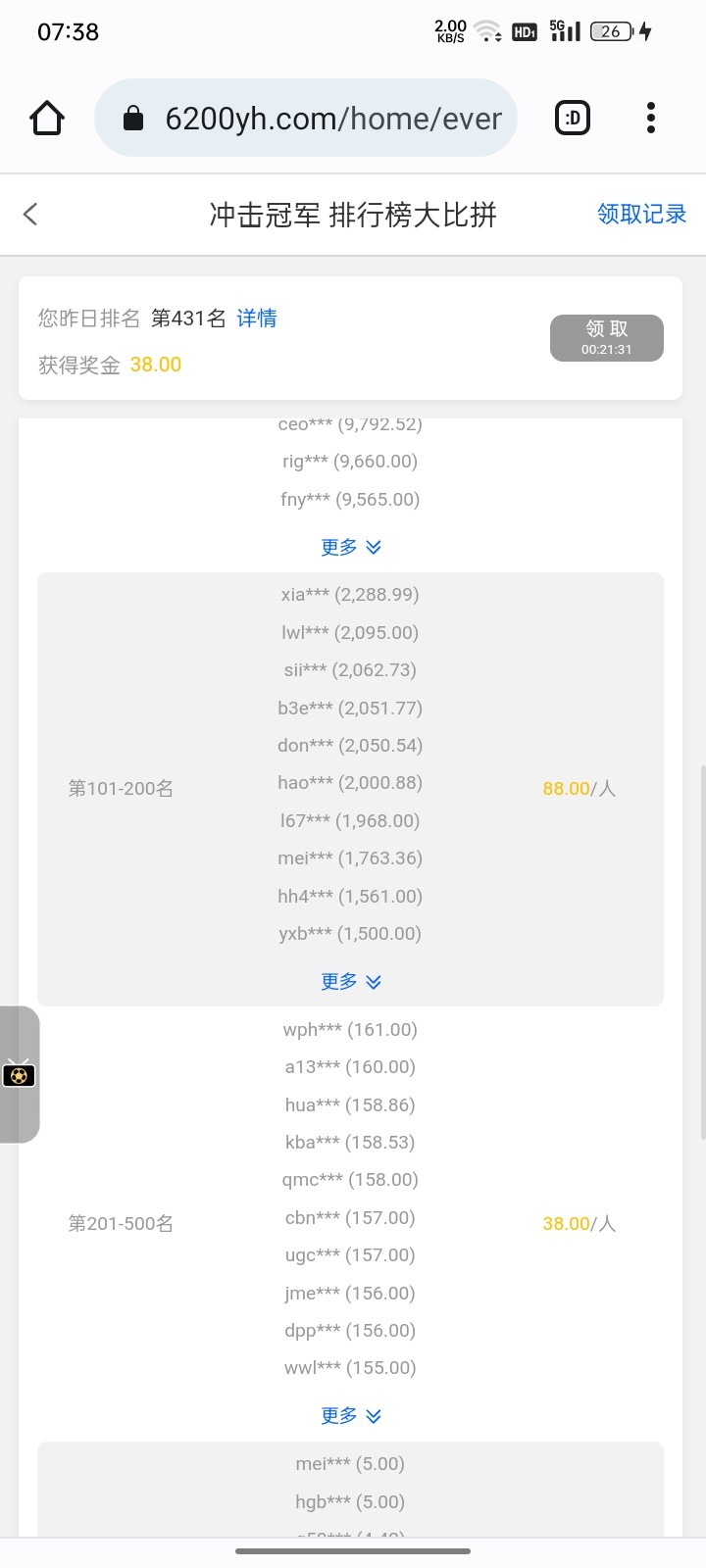 咋天有流水可以领彩金8点,流水不高领了俩天上去看看吧