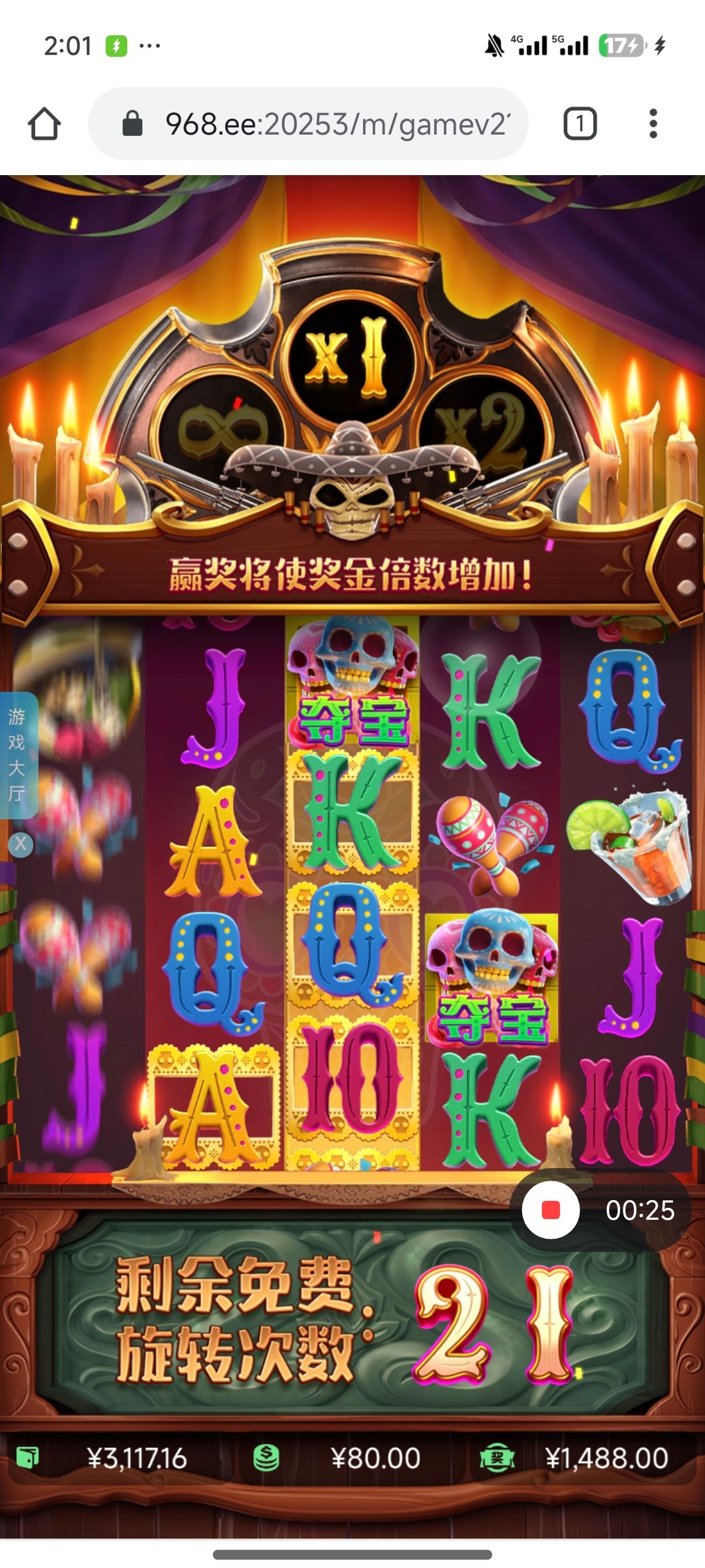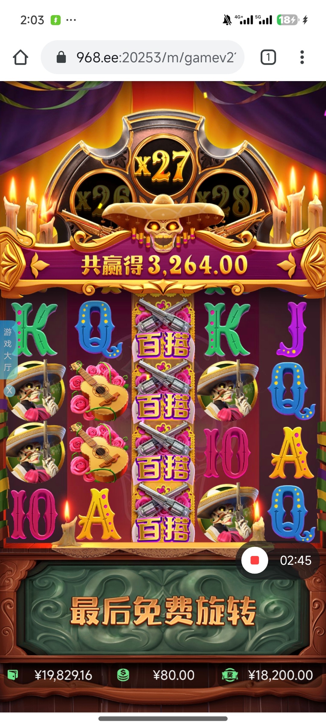 平常玩的还可以基本上几十上百一手 进免费概率还行就是从来没爆过大的 有时候进1倍都爆不上