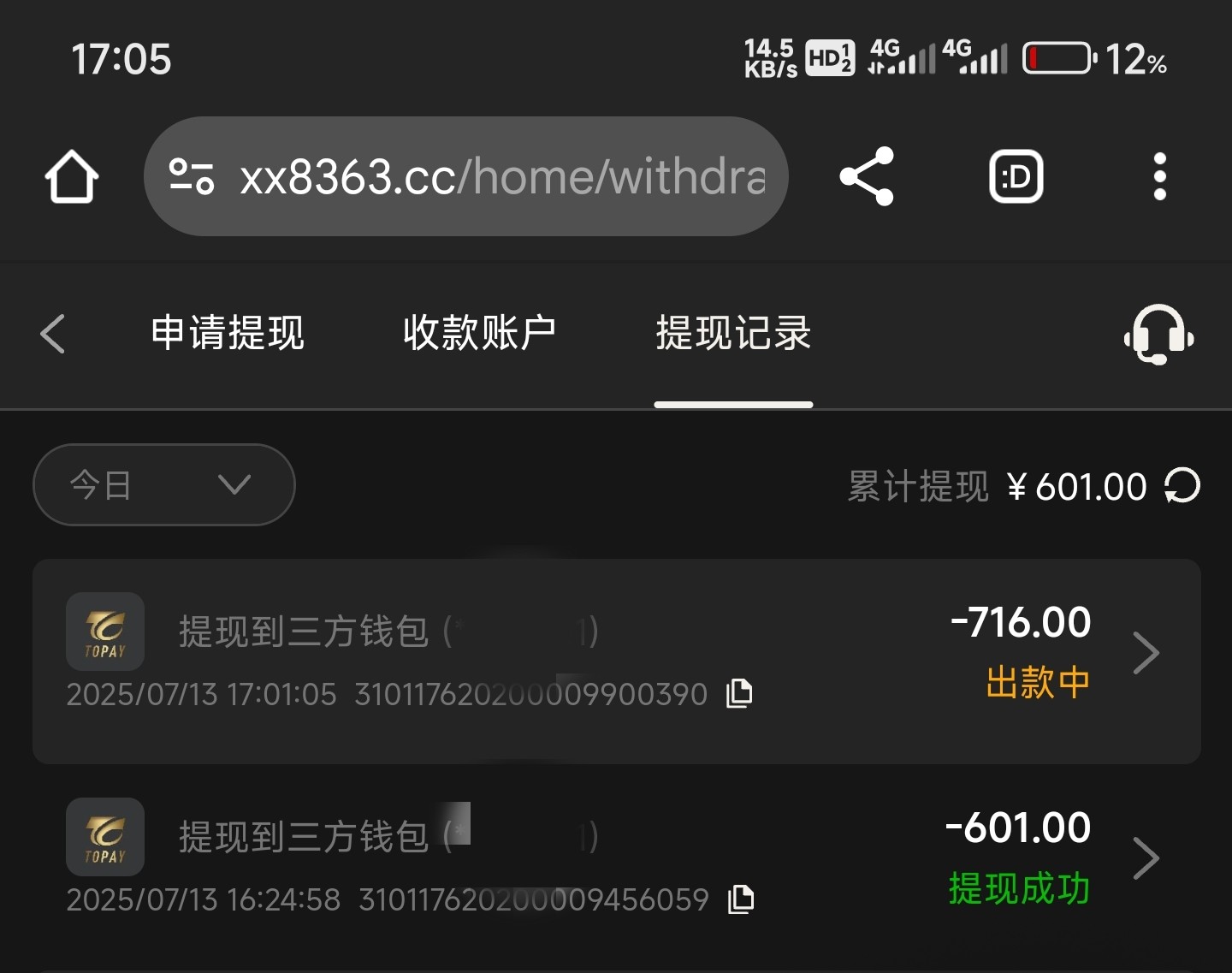 老哥们看看能到账不