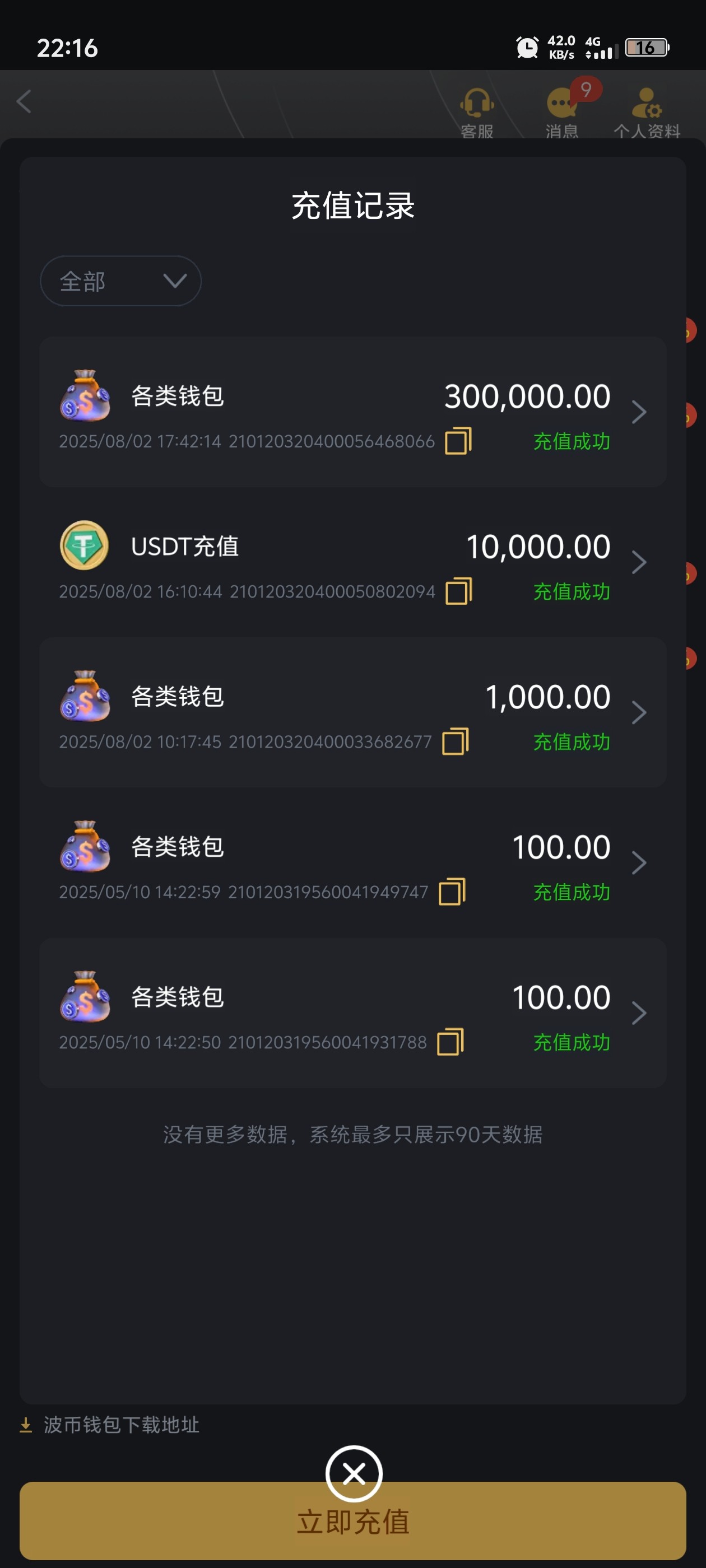 提100都够呛,还是以前充值过的