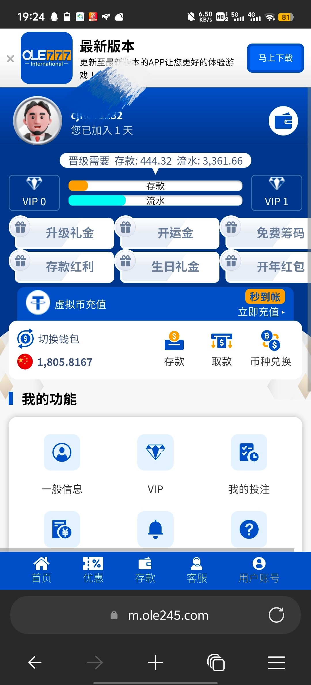 OLE777 ole245.com有没有知道这个平台的兄弟? 400送400,打上2800,现在要手持身份证才能出款 有没有懂这个台的?