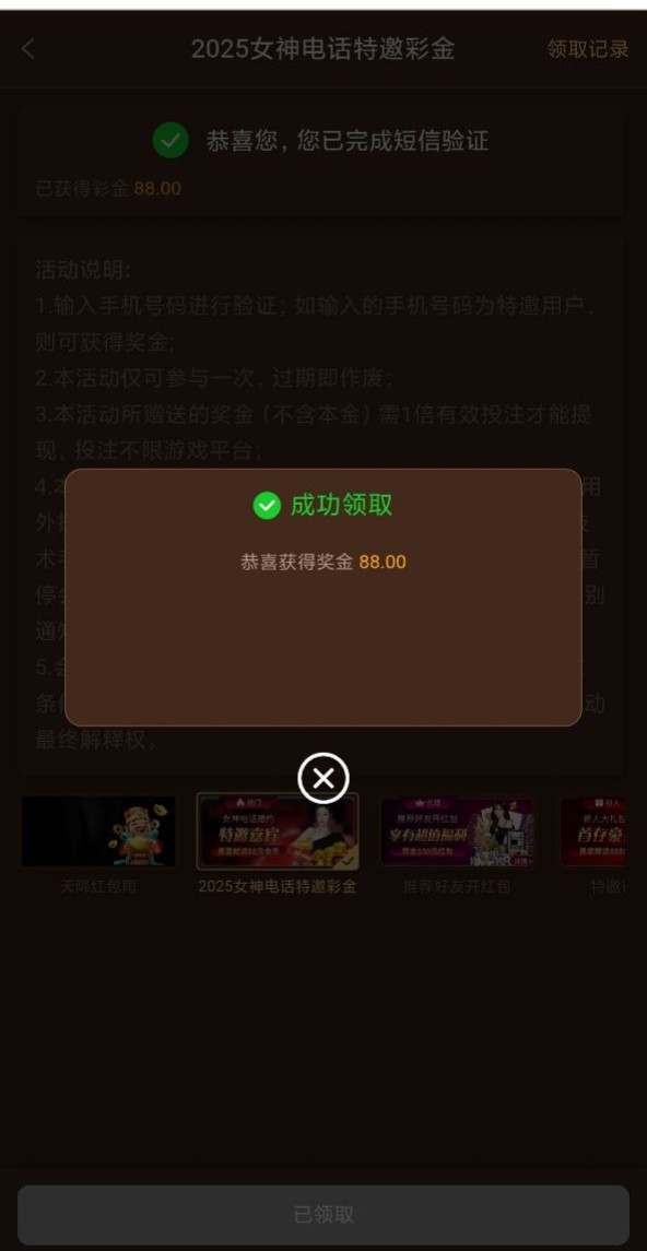 新用户注册自助验证手机号特邀秒88彩金,自助领取有就有没有无视吧