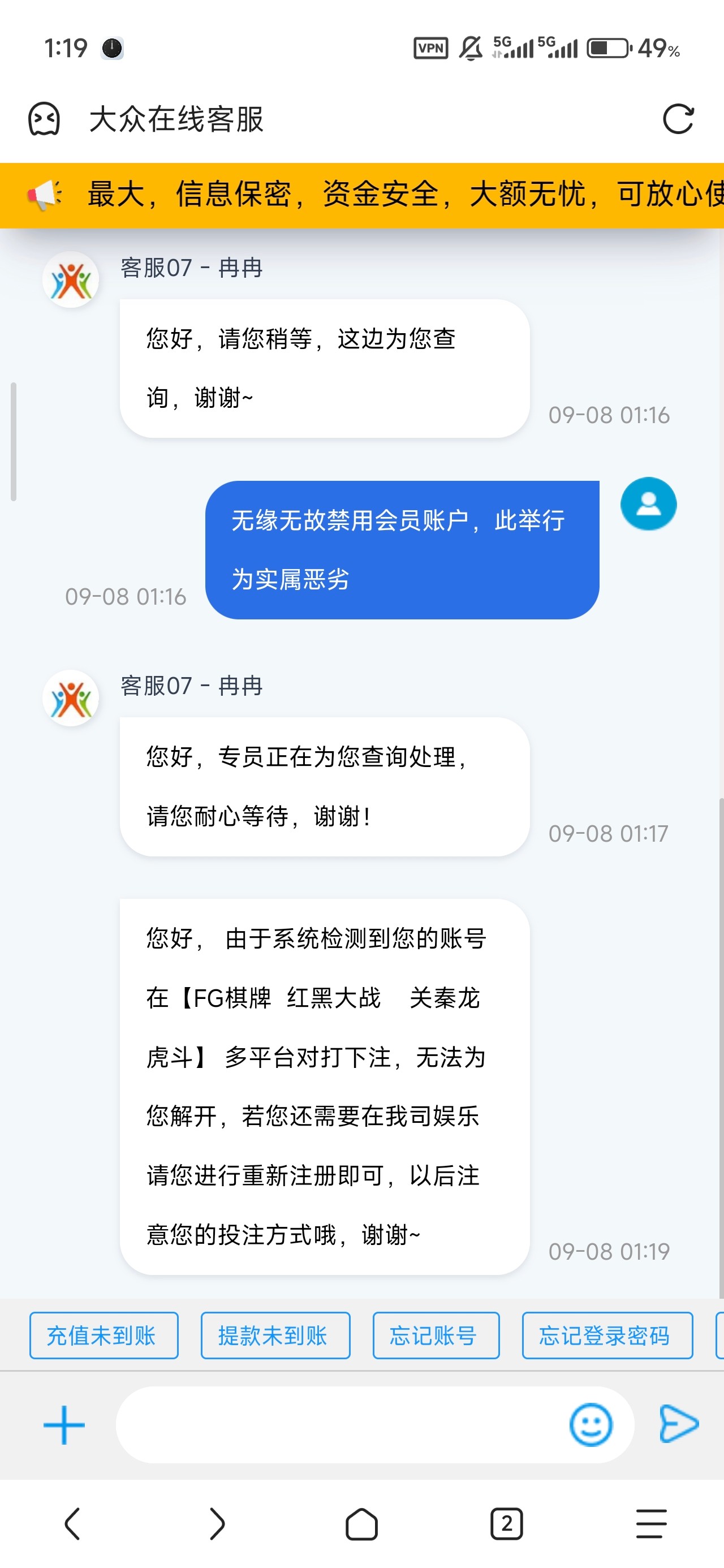 狗庄技术已经这么厉害了,两个账号对打的还是棋牌百家乐都能被查到,我还想着套平台的红包,返水和笔笔存款回馈呢,这下账号都封了。