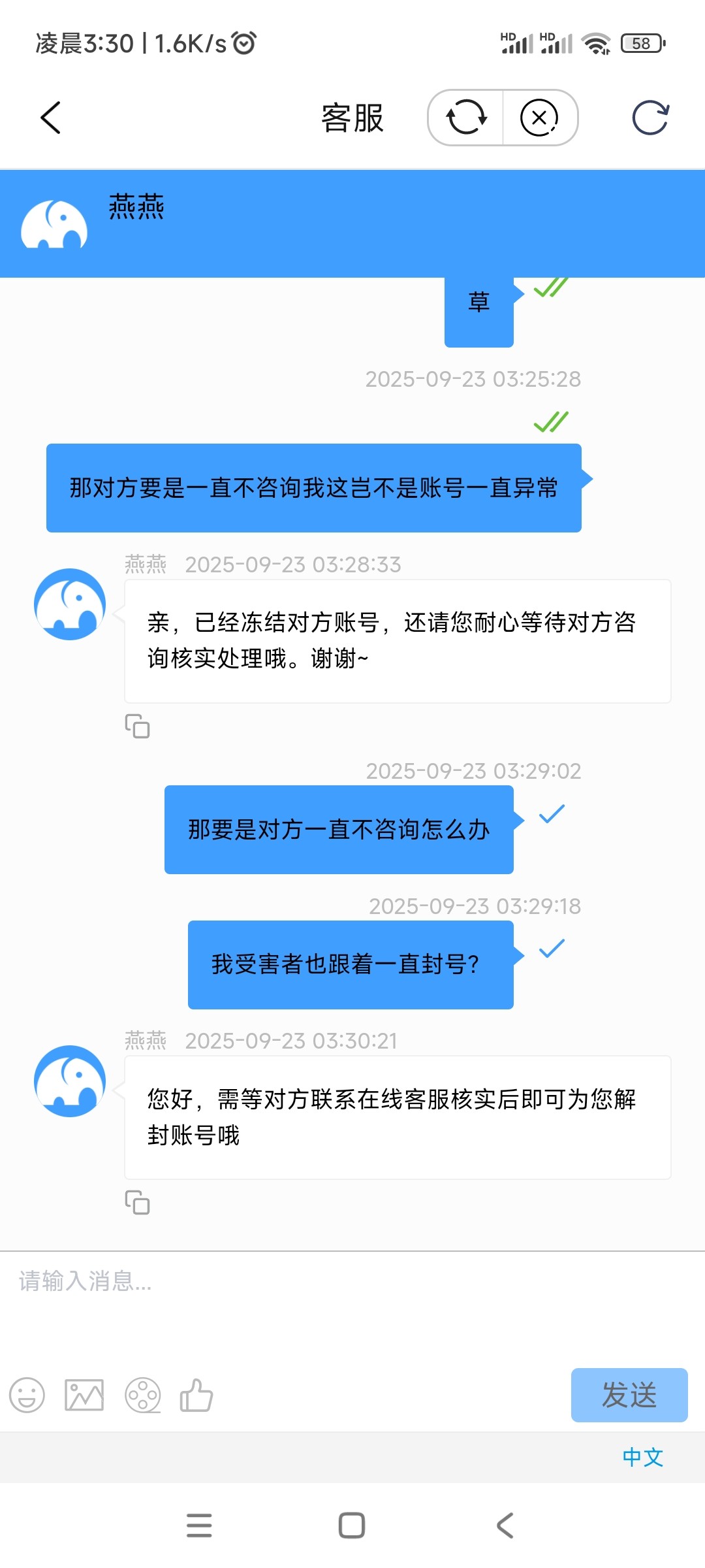 事情是这样的,在钱能钱包买币付款后卖家一直不放币而且卡在最后十几秒点暂停订单,我找了客服过一会订单完成了,刚想充值到游戏平台发现钱能账号已冻结。去咨询客服客服让我录视频录好之后客服说已经冻结对方账号,要等待对方咨询核实。那这种情况下对方要是一直不咨询,我这个账号是不是也会一直封着。有遇到这种情况的老哥吗,求告知