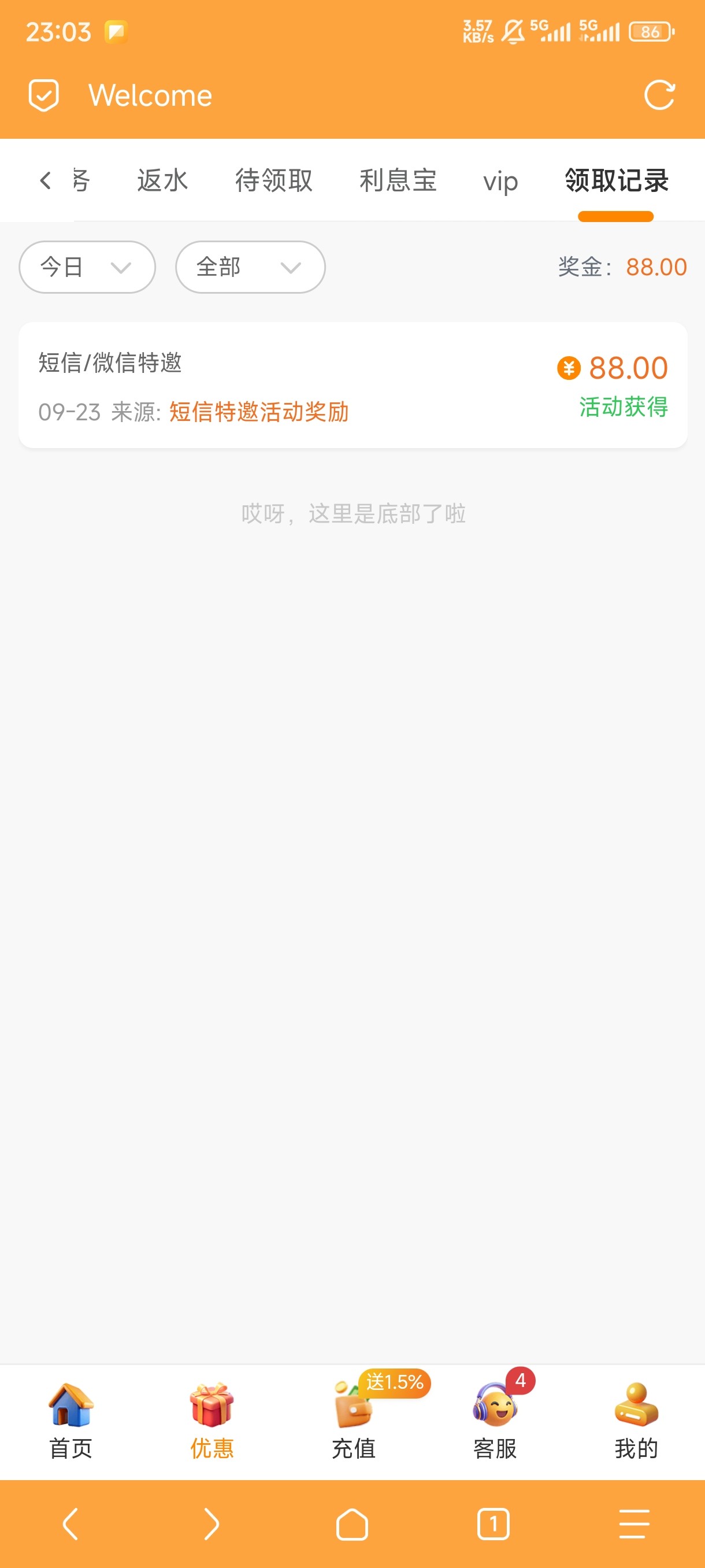 短信特邀领取88彩金