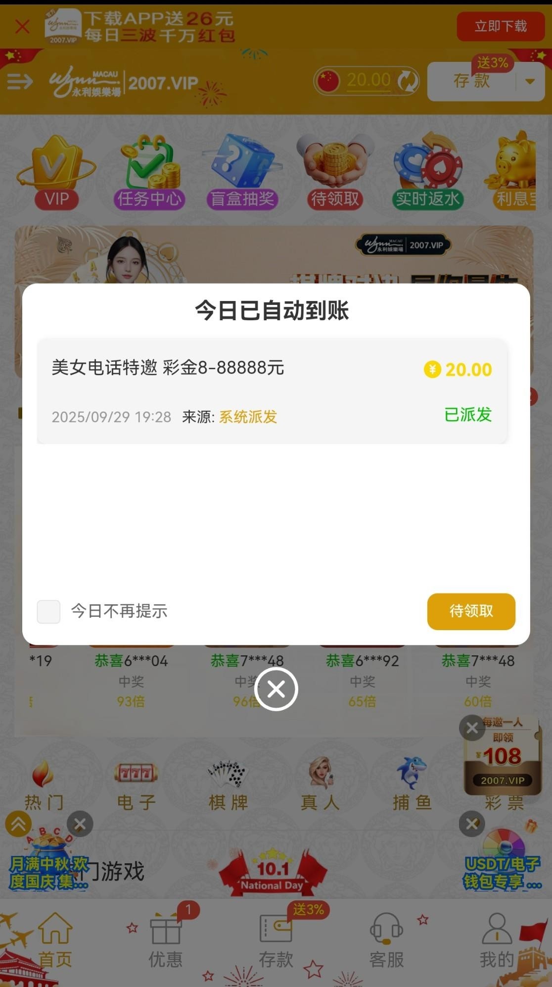 永利2007电话20彩金
