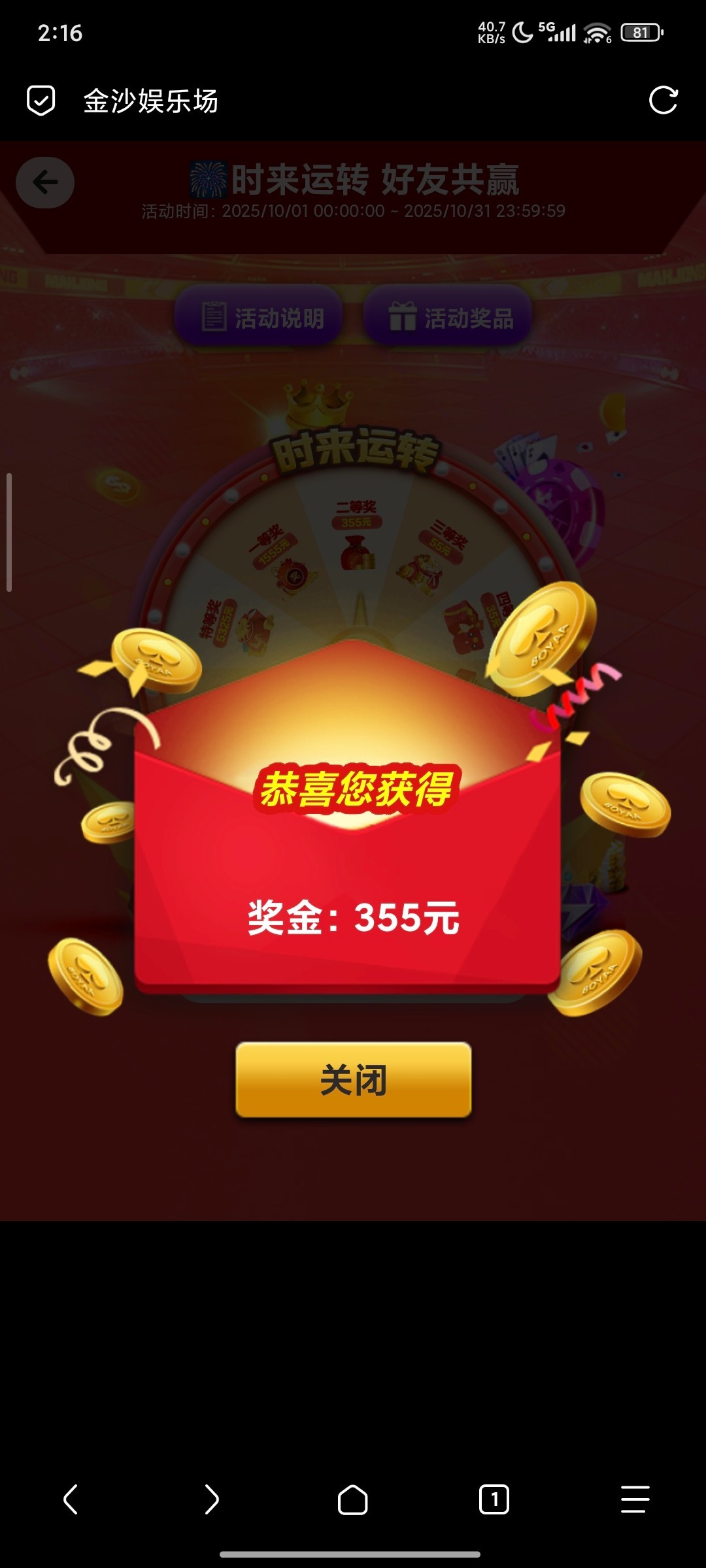 金沙终于给我转了多的,以前都是3或者1,今天来了一个355