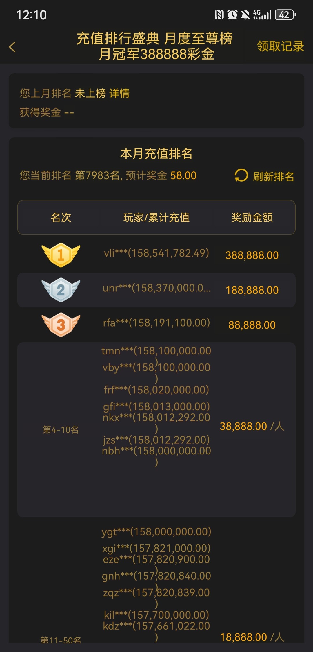 前面彩金名次 随你咋个充都是卵的