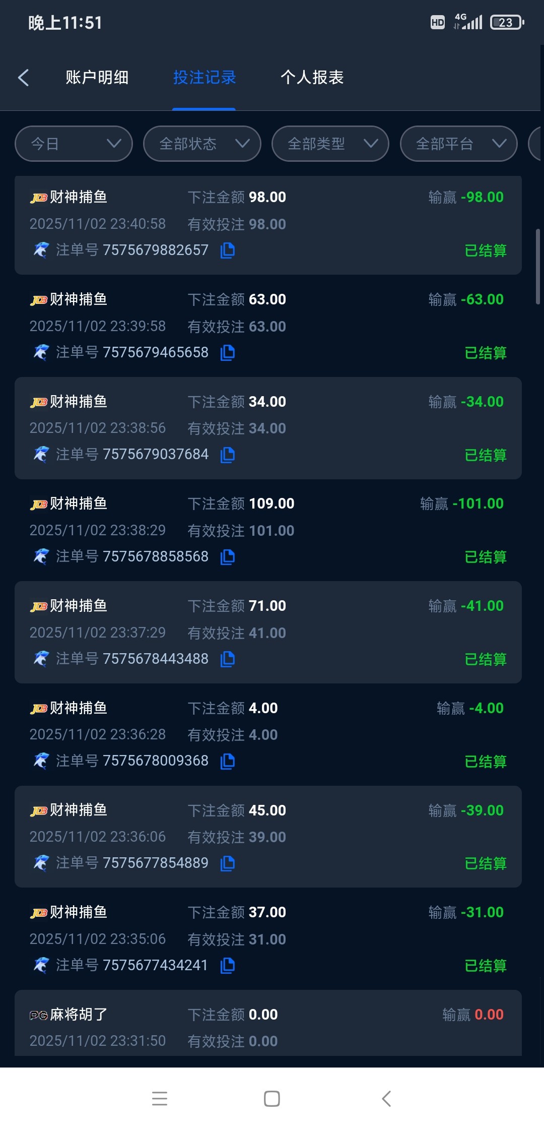 赌这东西真的是同人不同命,有些人运气就是有,有些人玩一辈子都不会赢,我可以赢了收,赢的机会也不给我,玩什么平台都是死路,干日结220,充了200,输了,今天1号觉得会放水,把手机押了800多,全输了进去,就打死一条像样的鱼还是输了,