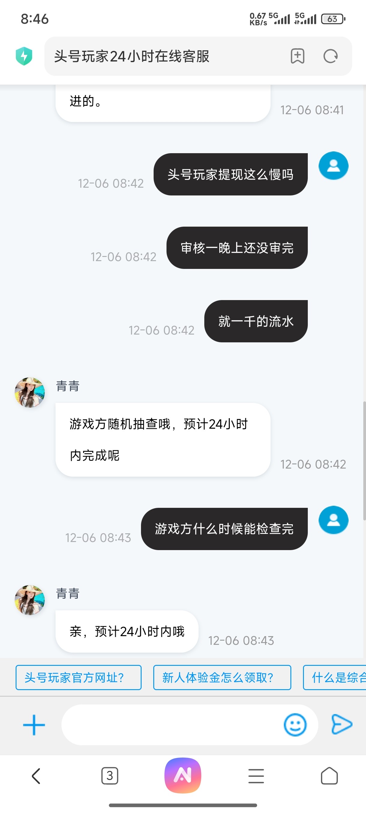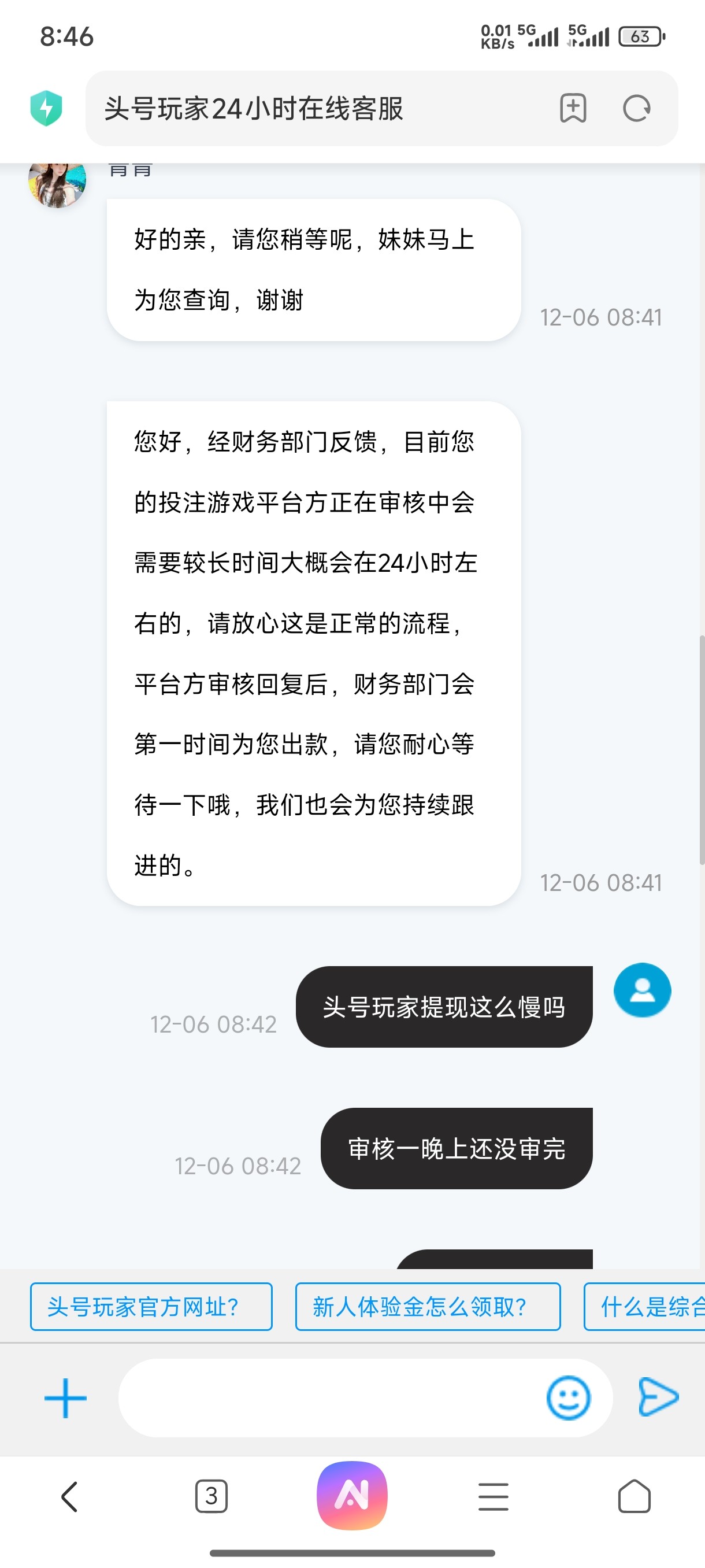 你有点悬了头号和乐玩是一家的属于半黑平台我之前经常玩这两个平台也遇到过审核都是两三个小时就审核完了这么久不应该