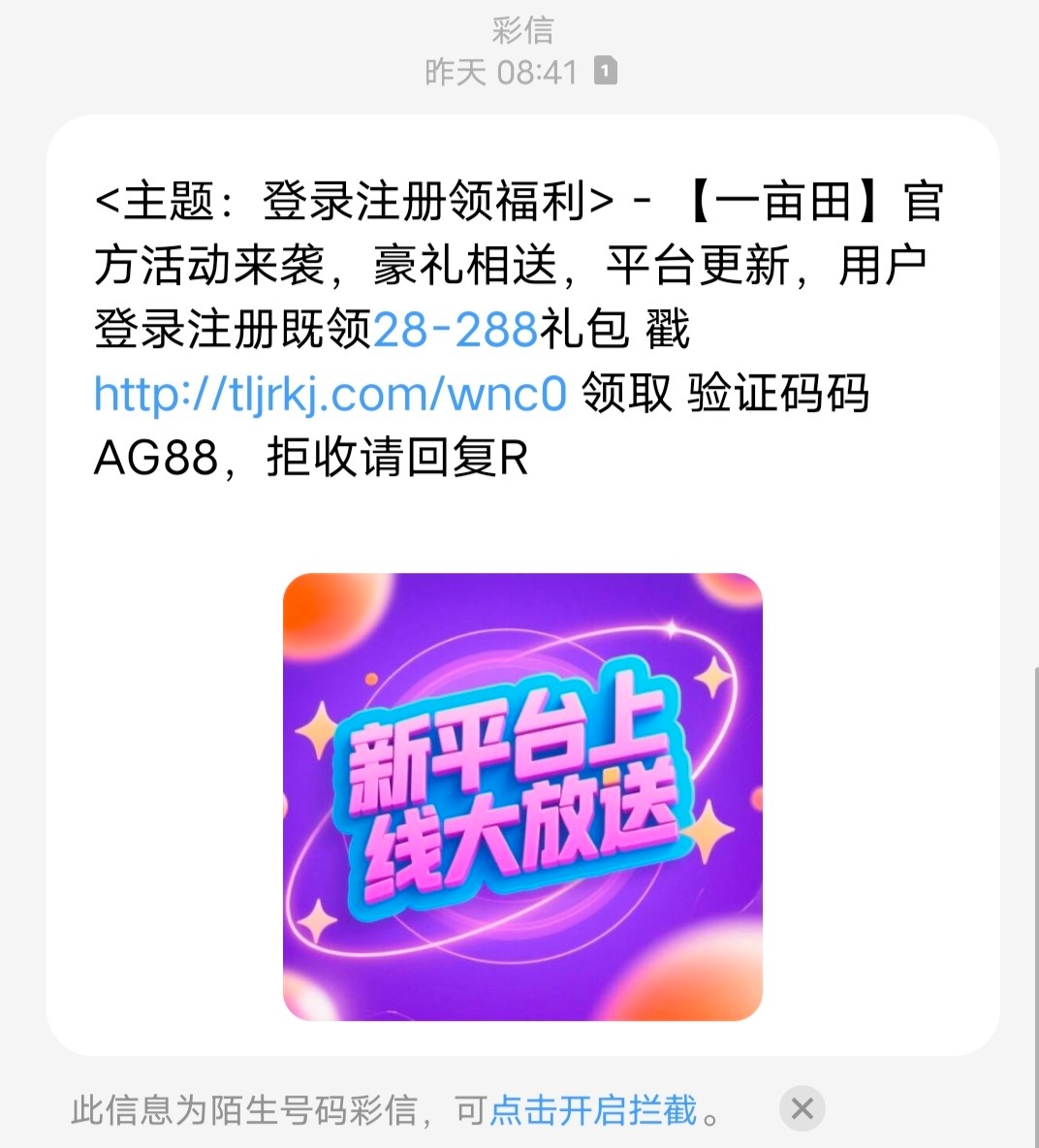 有短信,不知道能不能领,挂壁在大街边上了,沾沾好运让我提一点钱去网吧苟活一晚吧