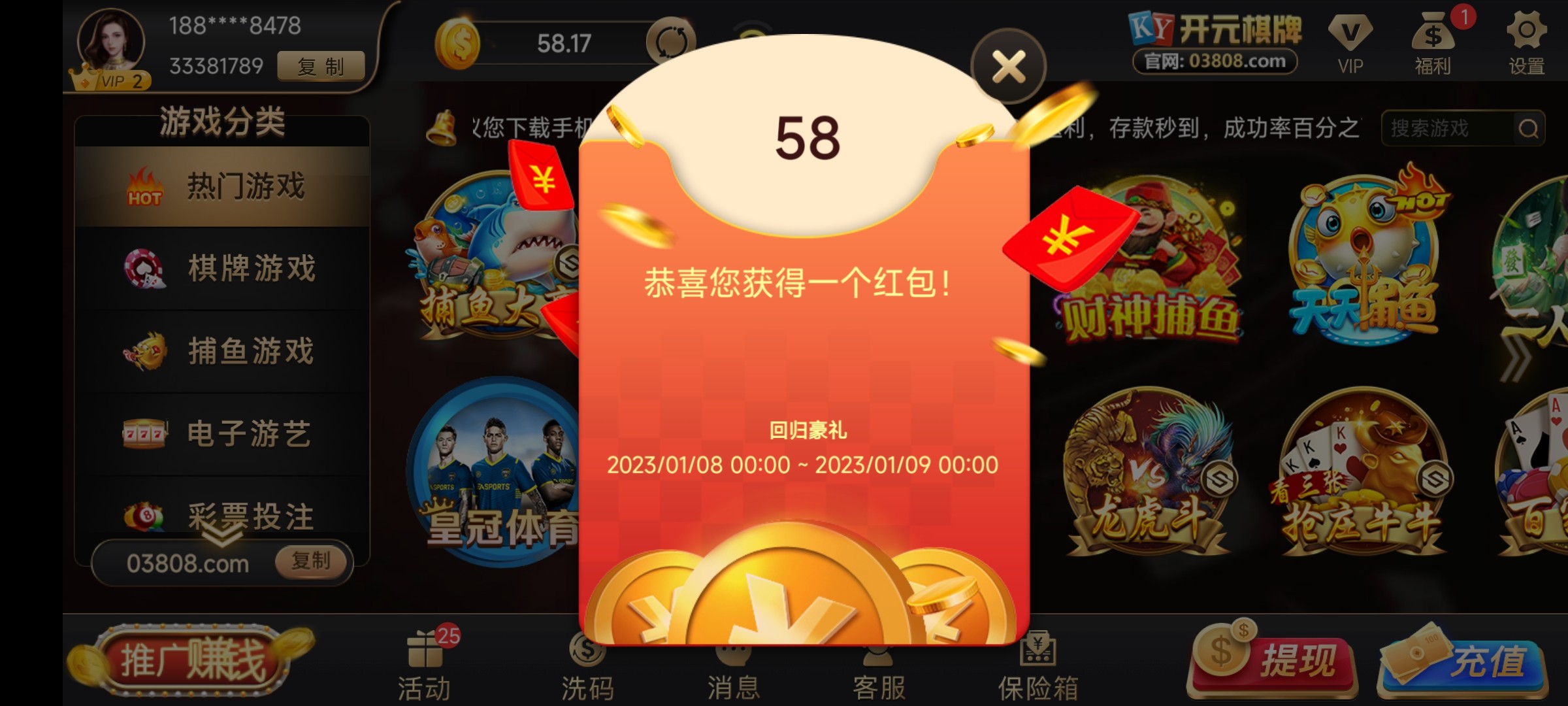 两个平台,上号直接弹出来,赶紧过去看看,等到6点会有逢8神秘红包,基本都是8或者18