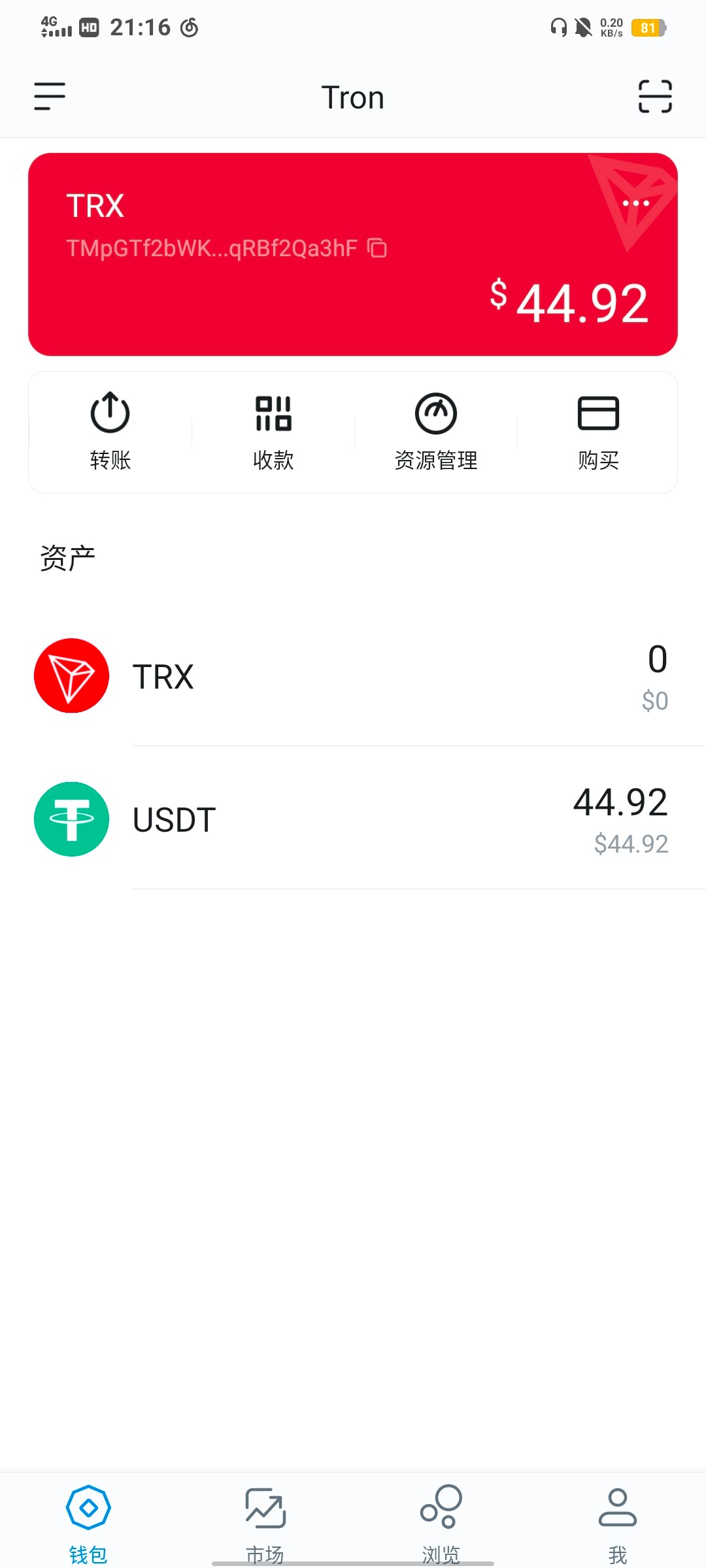 去欧易买20个trx,再复制你这个地址转过去,,再复制你欧易的usdt的trc-20的地址把u转过去再出售