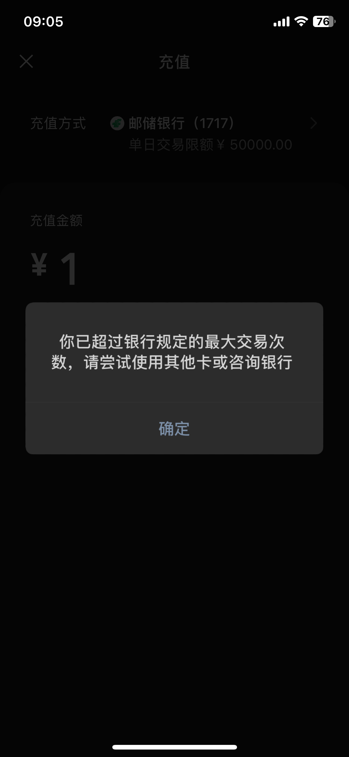 银行卡达到最大交易次数