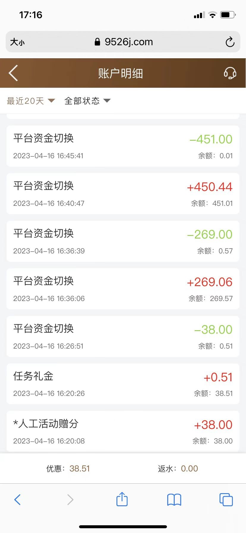 谢谢白嫖380,原本400多怕黑,所以又输了点进去刷流水