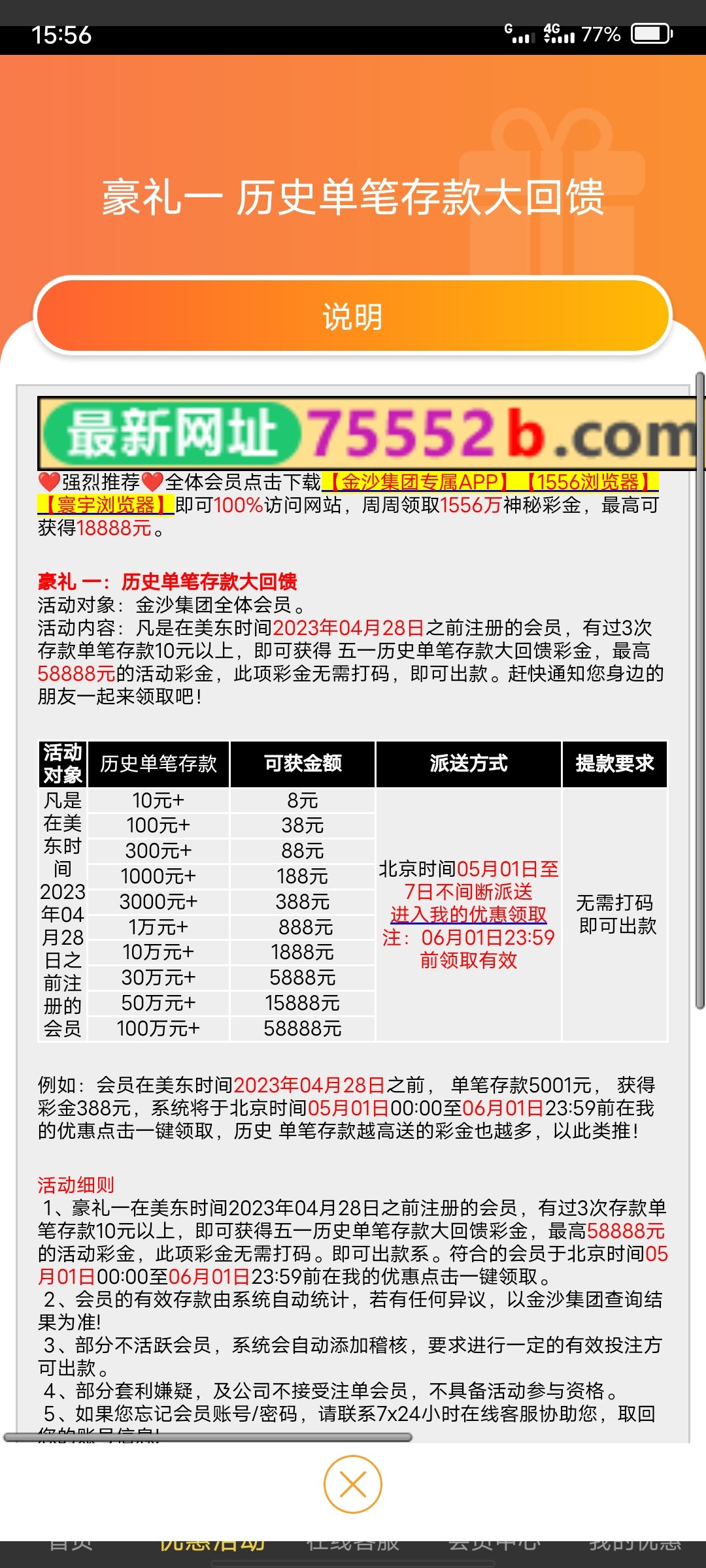 1556.com老账号送钱,给了我188,可以直接提款