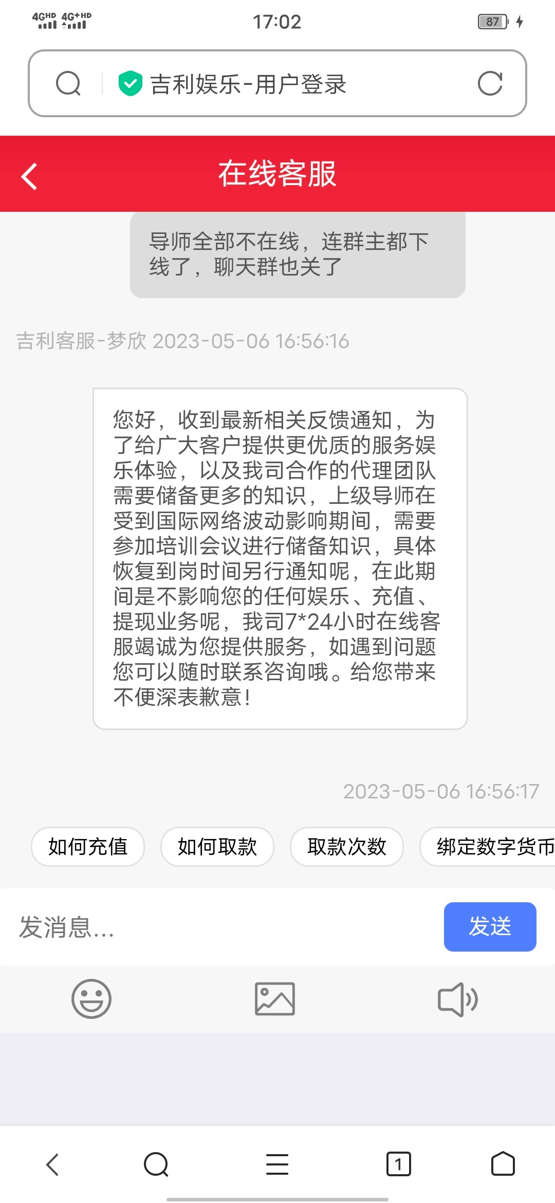 客服聊天都进不去
