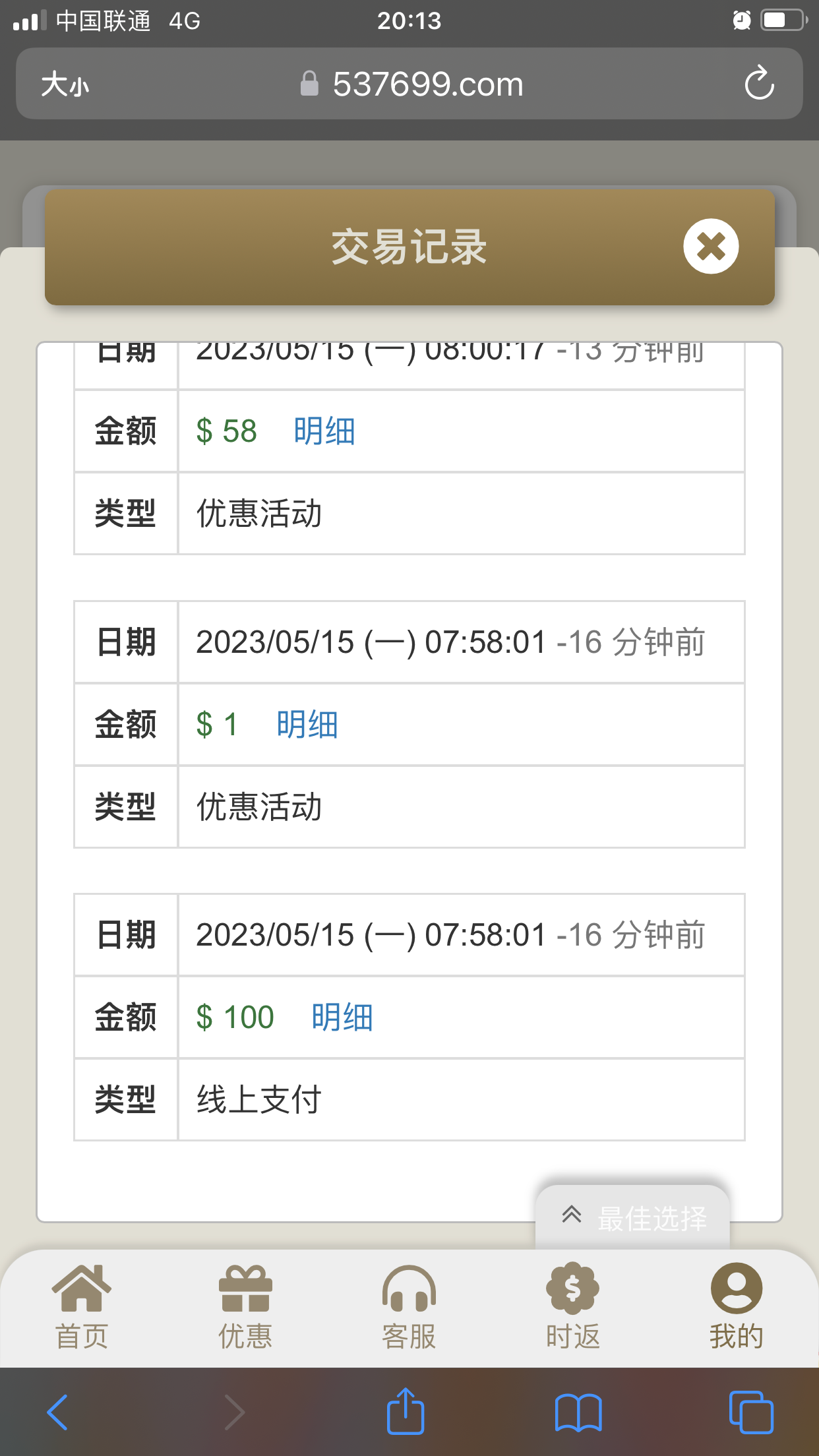 特邀碰瓷首存100+58,说是一水其实是本一彩三,出款图及短信图如下: