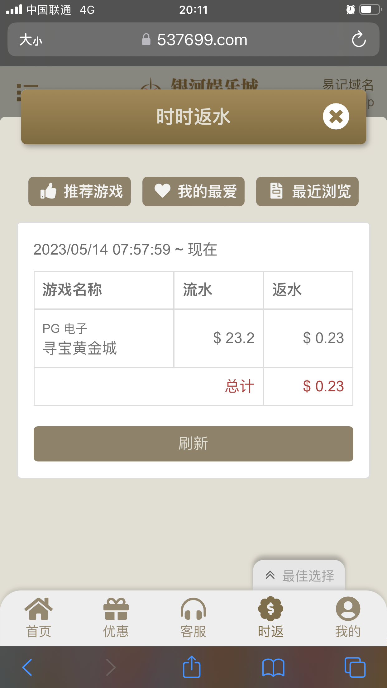 ganye4321 碰瓷到了,100送58黄金城两块钱一拉总共爆了23,块钱,其他都是空转,老子真他妈操你妈个逼